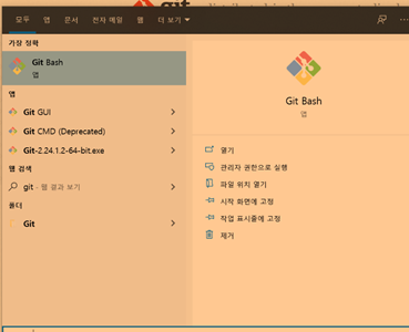 7. 이제 설치된 git bash를 찾아서 실행시켜준다.