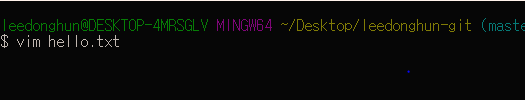 vim 에디터를 사용해서 직접 커맨드 창에서 hello.txt를 만들어 보겠다.