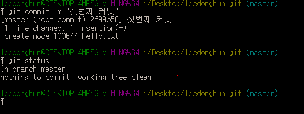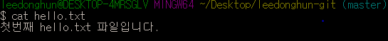 이전에 git 공부 (3)탄 에서 leedonghun-git이라는 폴더를 만들고