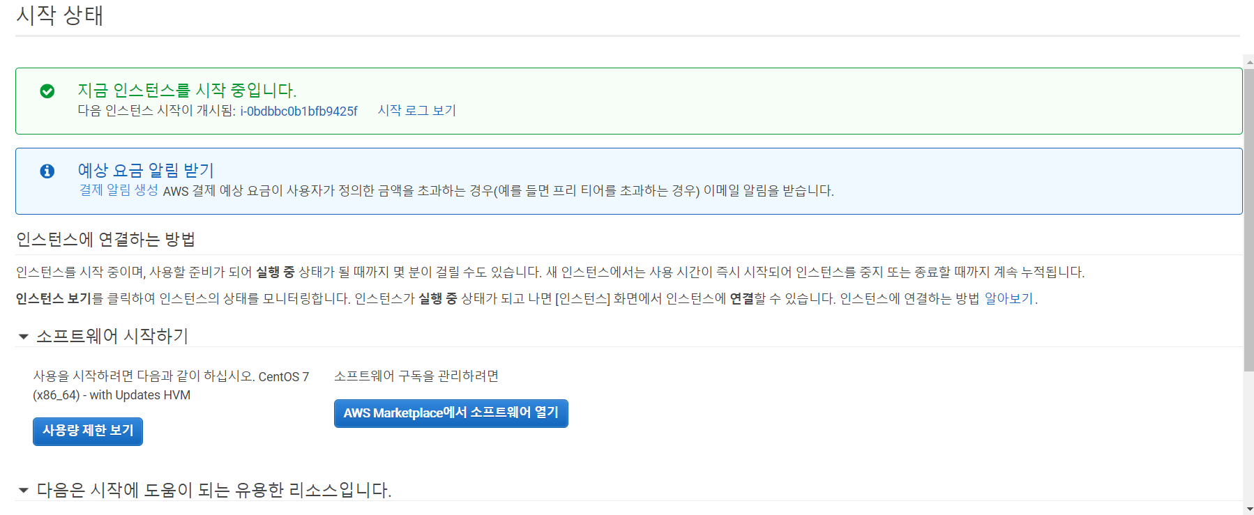 8. 인스턴스 시작을 하게되면, 아래와 같은 화면이 나옵니다.