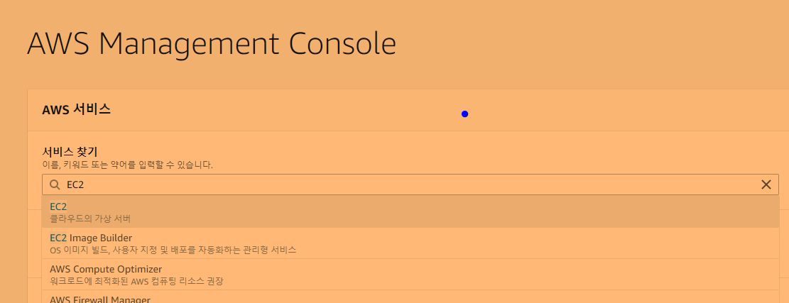 1. 로그인후, 서비스 찾기에서 EC2를 검색합니다.