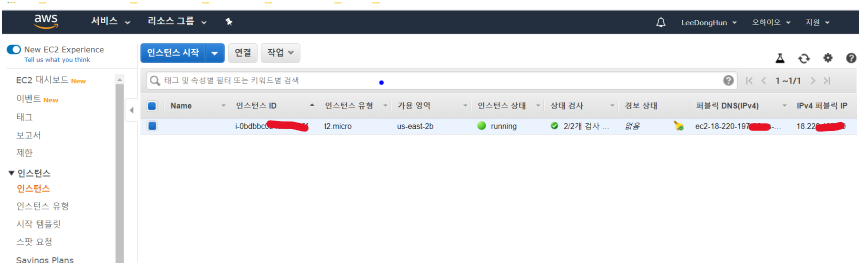 18. 다시 인스턴스로 돌아가면 해당 인스턴스에 탄력적 ip가 부여된것을 보실수 있습니다.!