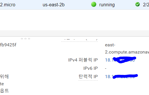 이는 aws에서 임시로 할당 해준 퍼블릭 ip이기 때문에