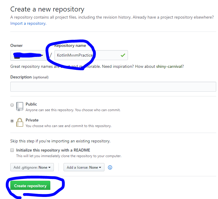 7. 이제 새로 만들 repository의 이름을 적어주고