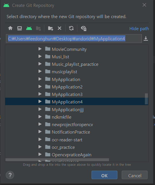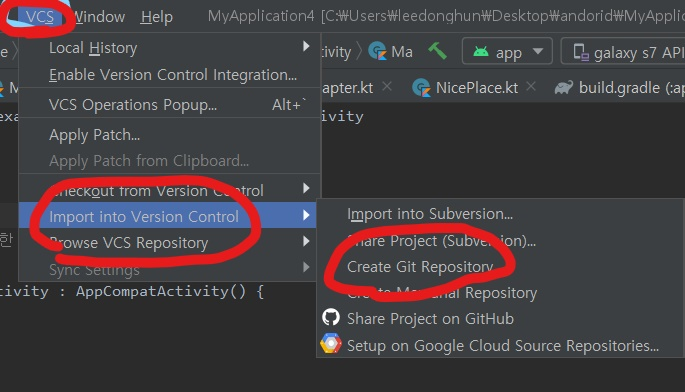 5. 자 이제 Git 이 안드로이스 스튜디오와 연결되었으니, 이제 해당 repository를