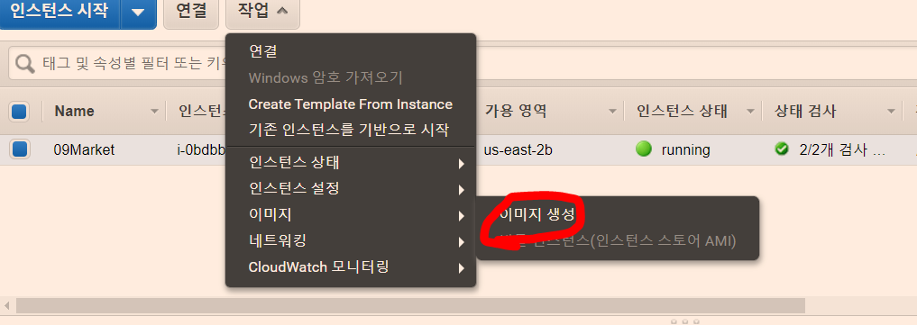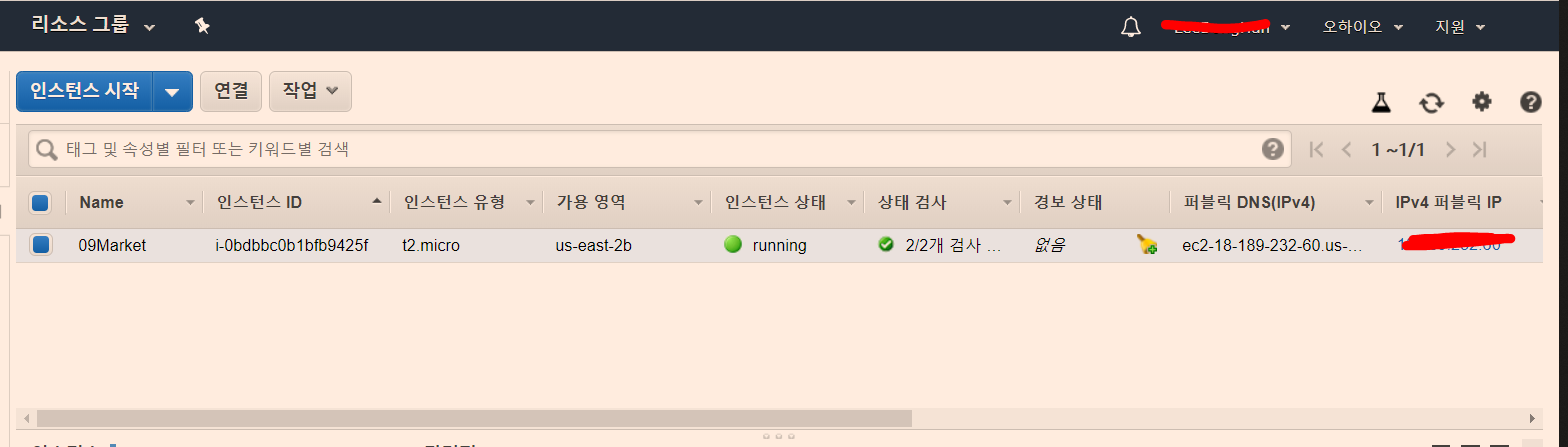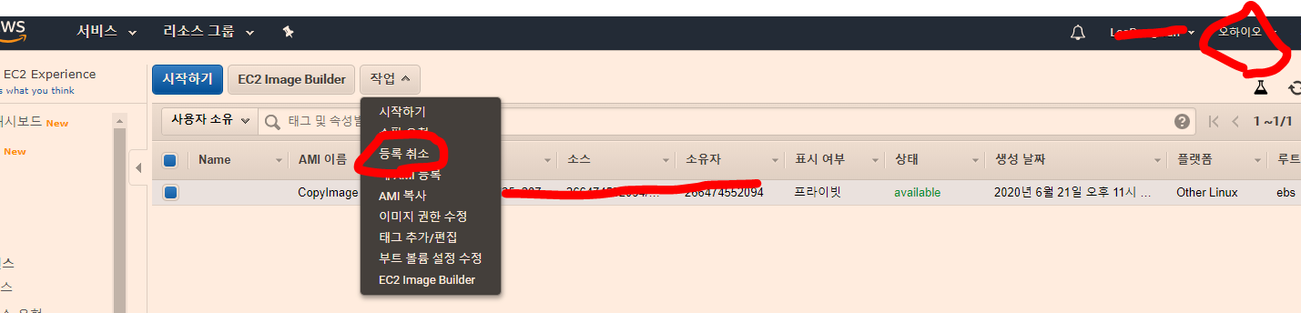 기존 리전(나의 경우 미국 오하이오) 에 존재하던, 인스턴스를