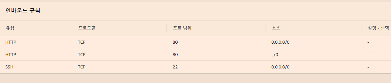 Aws 인바운드 규칙 80 포트 안뚤어놓음