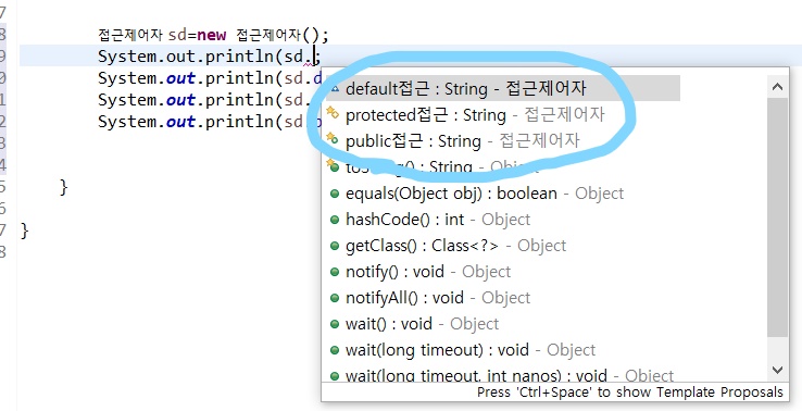 나머지 접근제어자는 접근이 가능하다는것을 알수 있었습니다.
